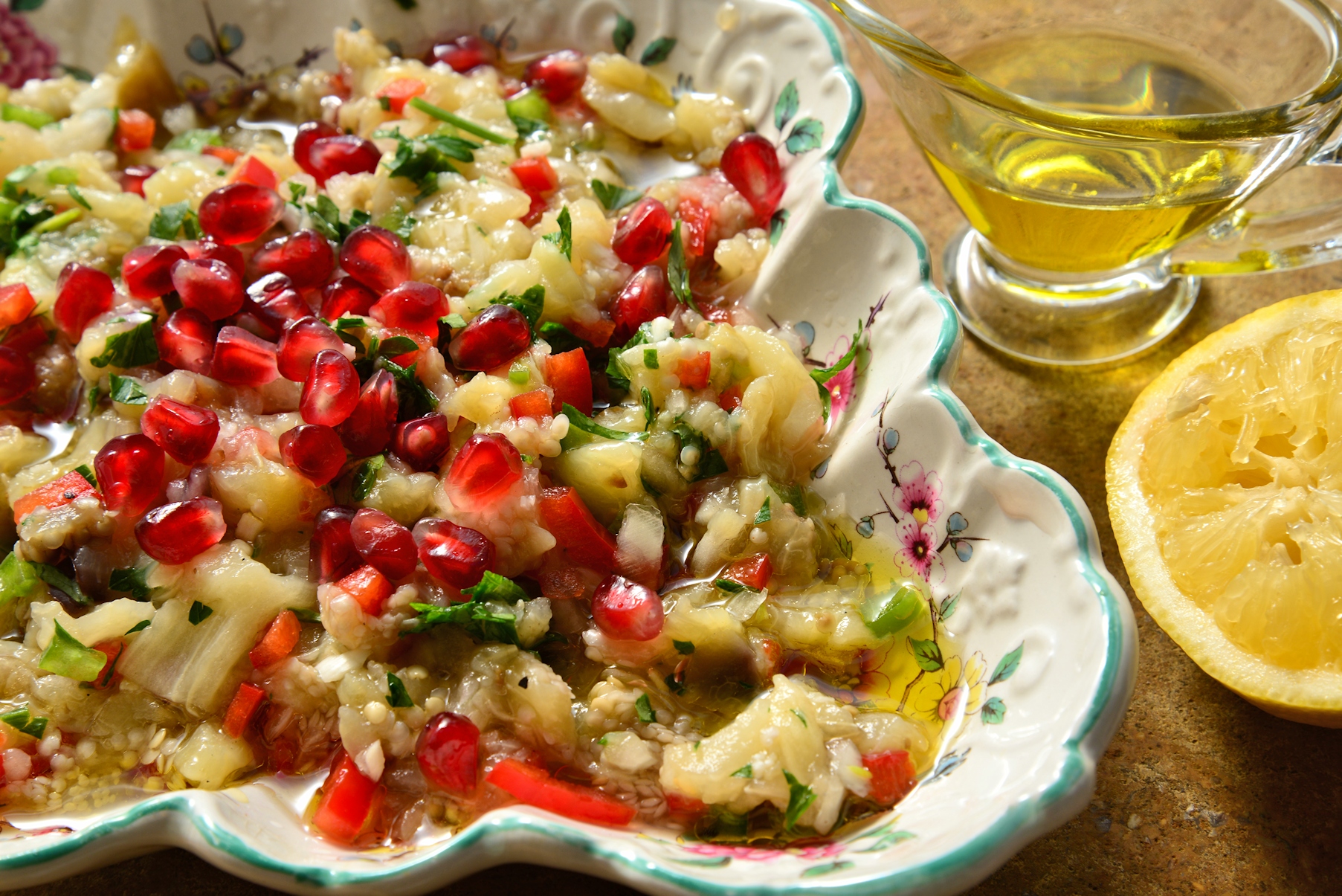 Типичный яффский салат из запеченных баклажанов, знаменитый Баба Гануш, очень часто, почти всегда, путают с баклажанным пюре, перемешанным с тахини, иначе протёртым кунжутом, или сезамом. Как там было, «Сумсум, откройся»? Нет, в книжке написано — «Симсим, откройся», и правильно, потому что сказка эта арабская, хотя действие её происходит в одном персидском городе.