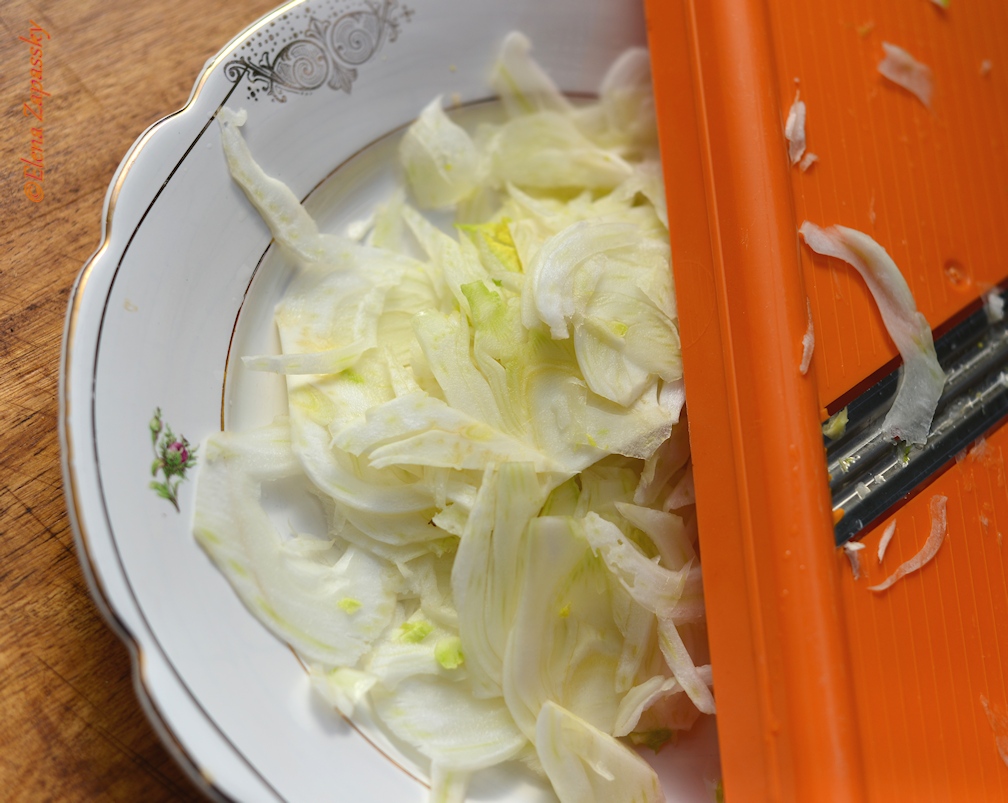 У сырого фенхеля флорентийского, на иврите шумар, есть свежесть и бодрость аниса. Я люблю салаты из фенхеля с фруктами. Для салата выбираем молодые клубни, бульбы, по английски и украински. Режем фенхель очень тонко, с помощью приспособления, которое называется мандолина.