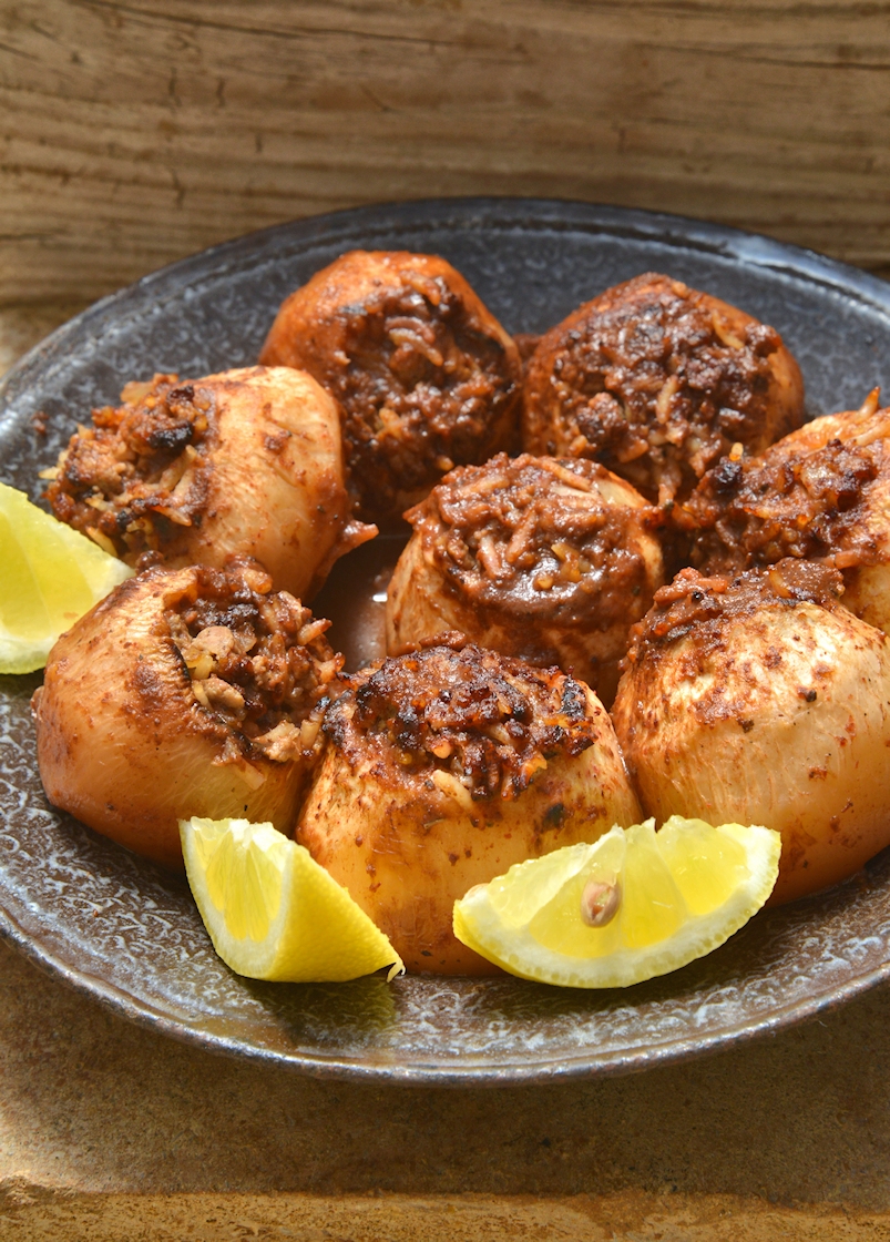 Турнепсы моем и чистим. Затем крепкой чайной ложкой или специальным прибором выгрызаем в турнепсах полость для фарша. На сковороду наливаем немного растительного масла и обжариваем турнепсы со всех сторон. Варим рис до полуготовности. На другой сковороде жарим мелко нарезанные лук и чеснок до прозрачности, добавляем молотое мясо, специи и жарим до готовности мяса. Мясо смешиваем с рисом и орехами и фаршируем турнепсы этой смесью. Готовим соус: два стакана воды перемешиваем с пастой тамаринда и протираем через сито, солим.