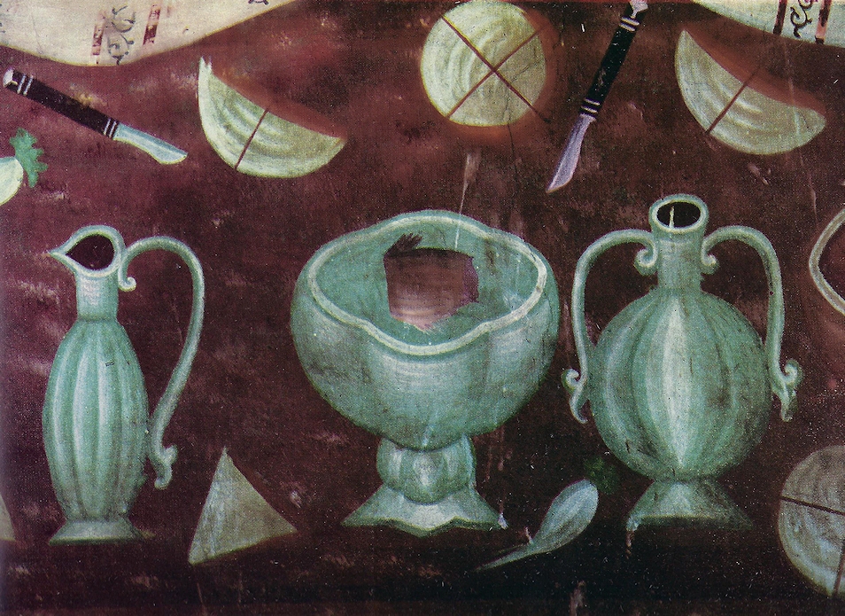 Жива во мне тоска по грузинским хачапури и еще по тем лепешкам, которые мы ели в Турции. Увидела как-то кафе в Тель-Авиве, на витрине реклама: настоящие турецкие лепешки, шевельнулась в душе напрасная надежда. Грузию мы пересекли от Тифлиса до Батума на микроавтобусе в составе группы израильских географов под предводительством его Превосходительства Господина Посла Грузии в Израиле. Было это до бага 2000. Когда мы спешно возвращались в Тифлис на прощальный и последний банкет в длинной череде банкетов, я попросила сделать остановку в селе Убисси. Водитель был очень недоволен, но свернул с дороги к монастырю, если женщина просит… Не помню, когда я купила книгу о Дамианэ, художнике, который расписал своды церкви в Убисси в 14 веке, до или после этой остановки. Часть стола Тайной вечери я сканировала с книги, нехорошо. Аппостолы Филлип и Фома, сидят на первом плане, лица их, буйные чубы совершенно не вписываются ни в какой канон, главное место фрески — стол с посудой и едой: рыба, сыр, кувшины с вином, какой-то абстрактный овощь. Одна рыба целая, другая- расчленена по порядку.