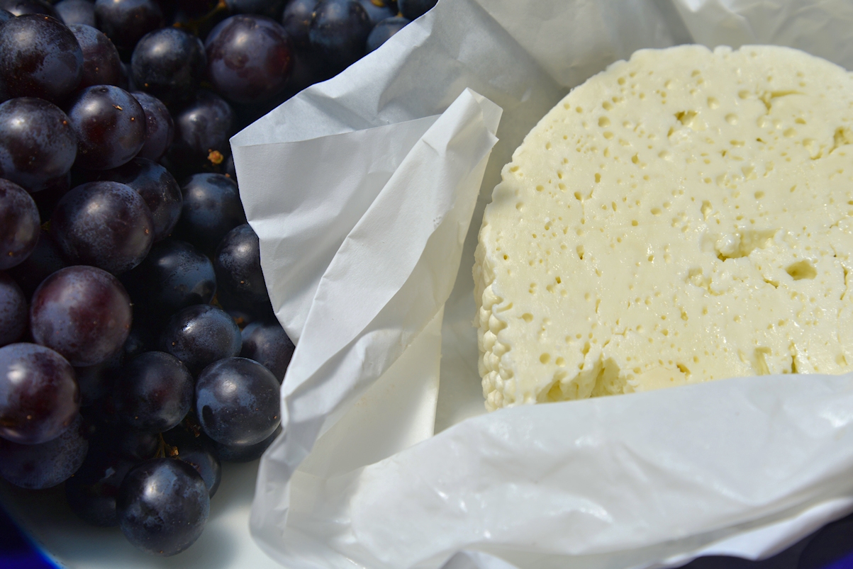 На рынок я пошла в поисках риккоты салата (соленая). О ней в магазине сыров ничего не знали.  Мое внимание привлек сыр похожий на эту риккоту. Мне сказали, что это грузинский сыр, на вопрос, как он называется, мне ответили, сыр грузинский. Я думаю, что это имеретинский сыр. В лавке сладостей, я наконец-то решилась спросить, почему кнафе всегда такое оранжевое,  продавец ответил, что это пищевой краситель. Без него, — сказал он с легкой улыбкой,- покупать не будут. В конце рыночной улицы ждала меня удача, настоящий мускат. Настоящий! — крикнул продавец. Сама вижу! —  ответила я.