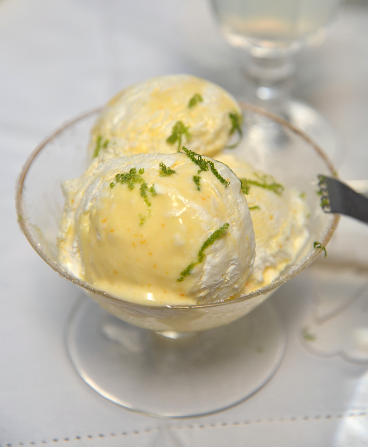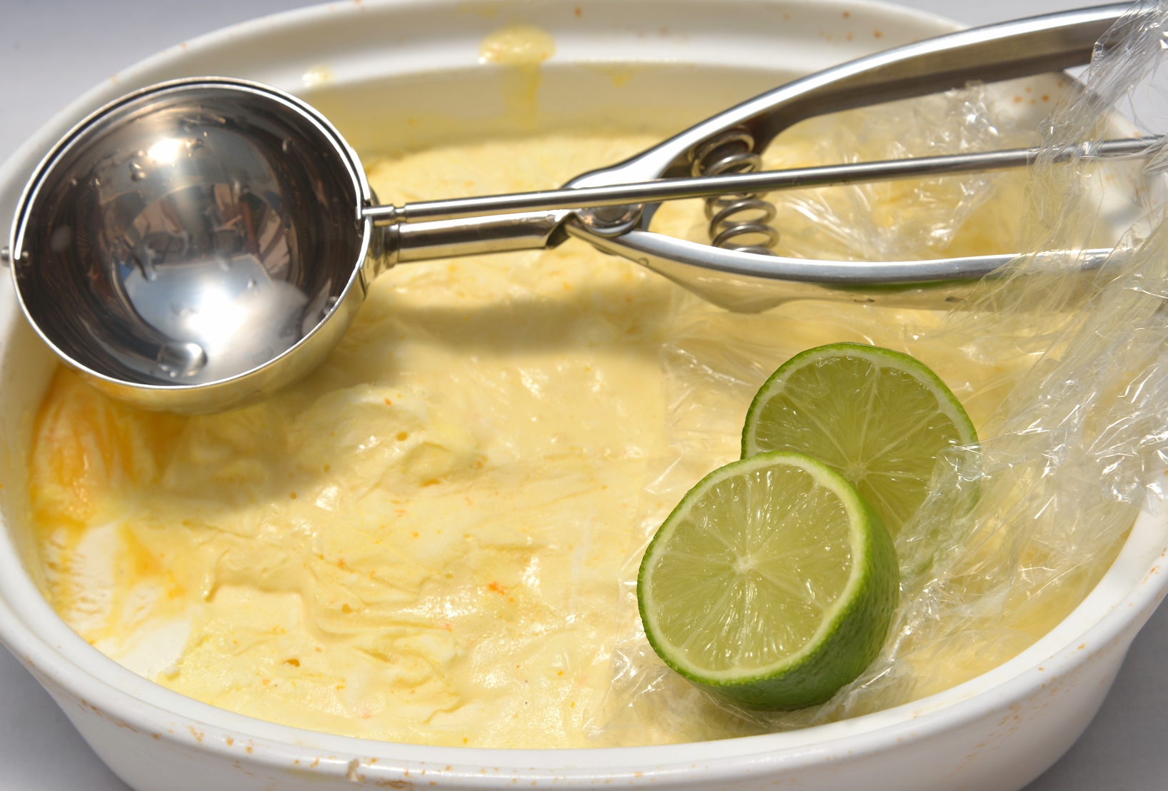 Желтки с сахаром взбиваем на очень маленьком огне или на водяной бане, когда они загустеют, превратяться в пышную светлую массу, добавляем текилу, ликер, сок лайма, апельсиновую цедру и соль, взбиваем еще немного и ставим в морозилку, чтобы остыло. Отдельно взбиваем охлажденные сливки со столовой ложкой сахара и ванилью. Когда сливки собъются, а сладкий сироп остынет, соединяем эти два ингредиента, нежно перемешивая. Перекладываем в подходящую посуду, закрываем пленкой и ставим в морозилку на ночь.