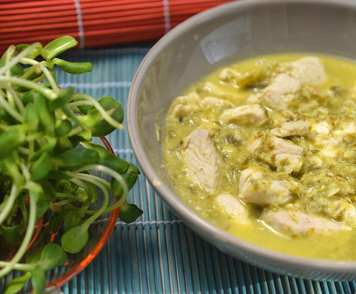 Продукты для соуса режем на небольшие части и перемалываем в блендере, добавляем воду или бульон. Полученный соус доводим до кипения в сотейнике или кастрюле, кладем в соус кусочки мяса и тушим его на маленьком огне до готовности мяса, как я обычно делаю, или дольше, до полутора часов, и тогда, конечно, не будет столько соуса. Подходит к этому блюду белый рассыпчатый таиландский рис.