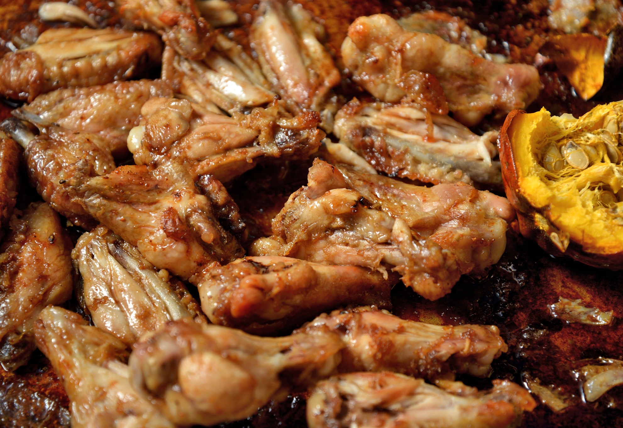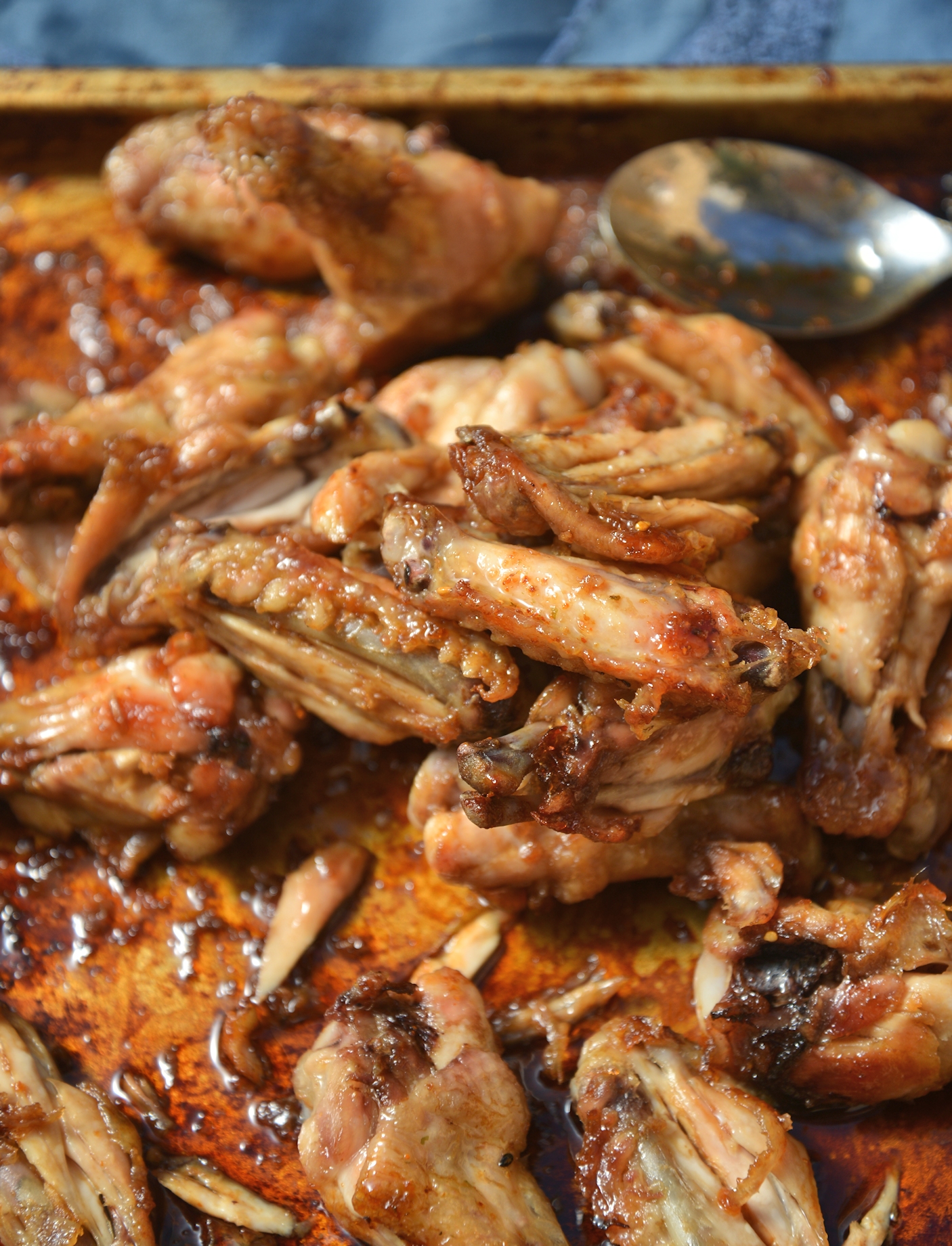 Все продукты для соуса перемешиваем. Вынимаем крылышки из духовки, заливаем их соусом и распределяем его по всему противню. Можно поставить на несколько минут в духовку.