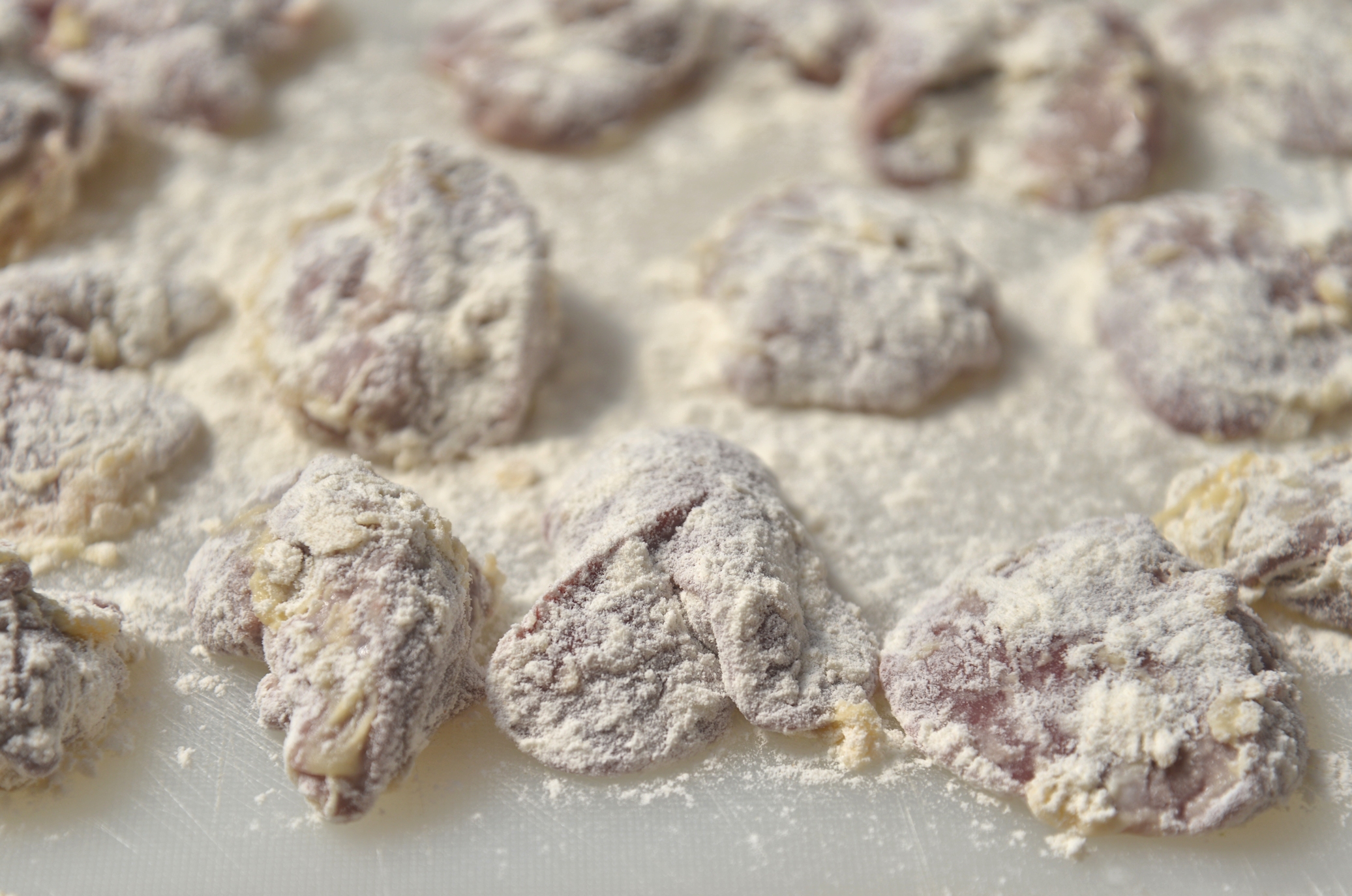Печень чистим, разрезаем на куски, промываем, кладем на дуршлаг, чтобы стекла вода. Перчим, солим, добавляем мускатный орех. Тем временем разогреваем сковороду с большим количеством растительного масла. Каждый кусок обмакиваем в размешанном яйце и погружаем в мисочку с мукой, затем стряхиваем с него лишнюю муку и выкладываем на разделочную доску. Когда все куски будут подготовлены, кладем их в масло и жарим на среднем огне. Печень должна прожариться, но не подгореть. Соблюдаем осторожность при жарке, не смотрим на сковороду с близкого расстояния, лучше вообще к ней не подходить, а когда переворачиваем куски, то прикрываем себя какой-нибудь крышкой как щитом. Печень при такой жарке имеет обыкновение стрелять раскаленными масляными кусочками, довольно сильно и больно. Я делаю из такой печени бутерброд из свежего черного хлеба с сыром. Вкуснее этого мало что есть на этом свете.
