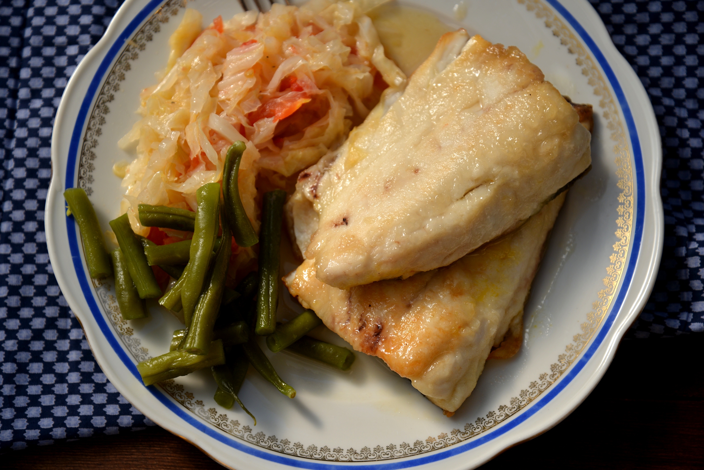 Филе разрезаем на две части, каждый кусок обваливаем в муке и недолго обжариваем с обеих сторон на сильном огне. Складываем рыбу в подходящую для духовки плоскую посуду с бортиками. Рыба должна лежать в один слой. Щедро наливаем на рыбу японский соус мирин и ставим в нагретую духовку на 10 минут.