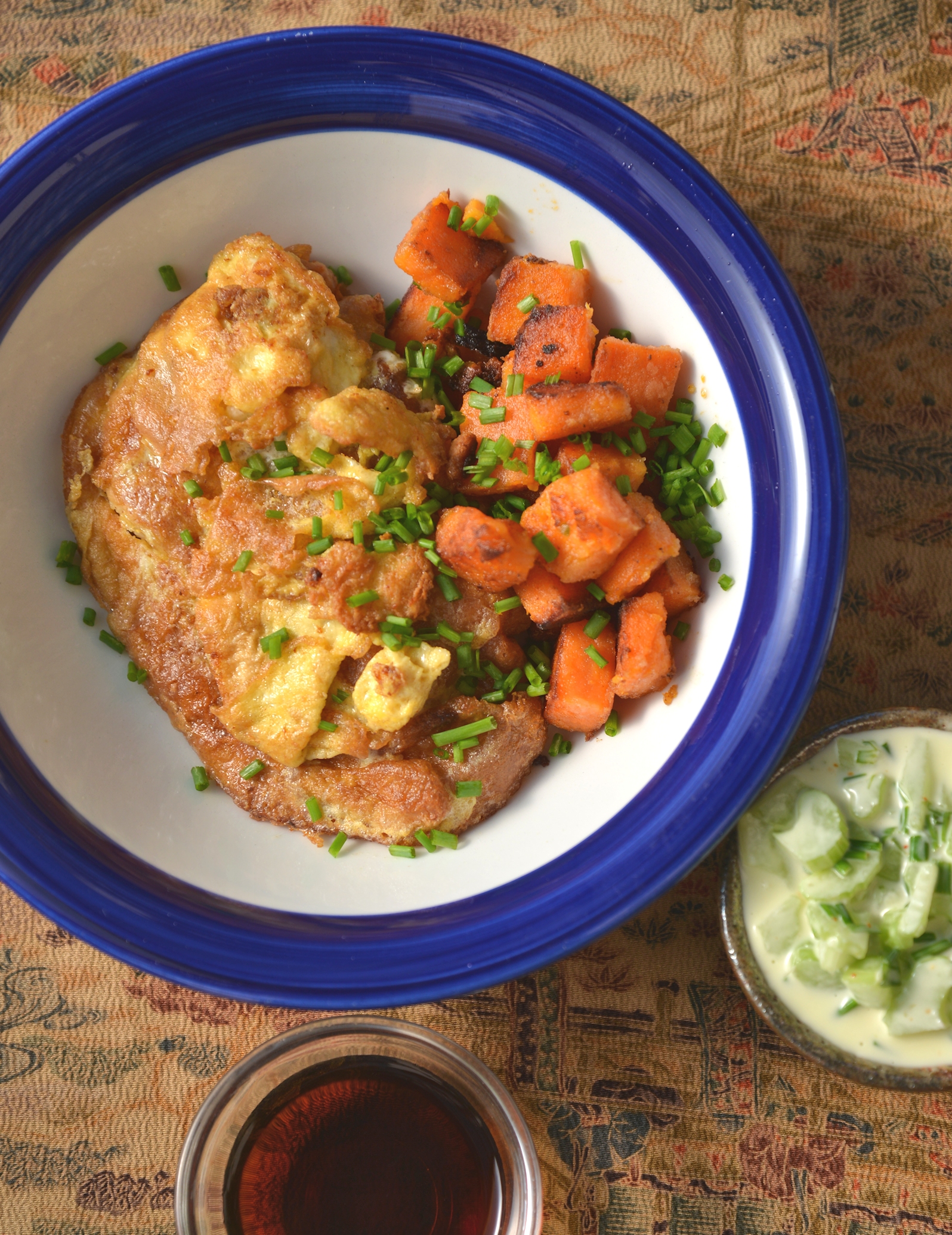 Этого цыпленка я сделала по мотивам Цыпленка Нанбам, мой цыпленок — это что-то вроде попытки нарисовать китайский иероглиф. Но, несмотря на неточности и пробелы, со мной случилось невероятное, я, не заходя в дом, съела всю порцию в своем дворе-студии, можно сказать на глазах соседей, правда, пользуясь ножом и вилкой.