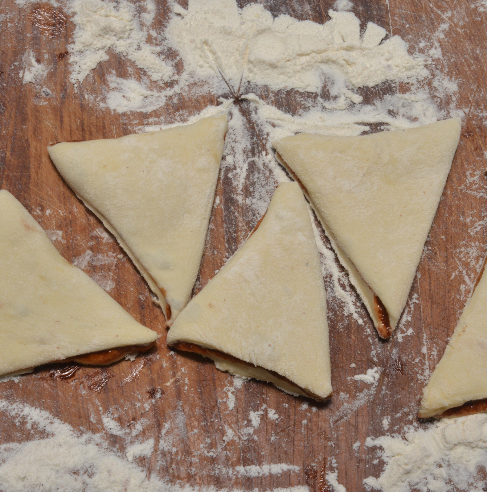 Рецепт был в газете hаарец. Честно скажу, это моя не первая и не вторая попытка сделать эти простенькие традиционные рогалики, спешу успокоить, ни грамма теста или шоколада не пропало. Рогалики не получились «как из магазина», впрочем я пеку, преследуя именно эту цель.