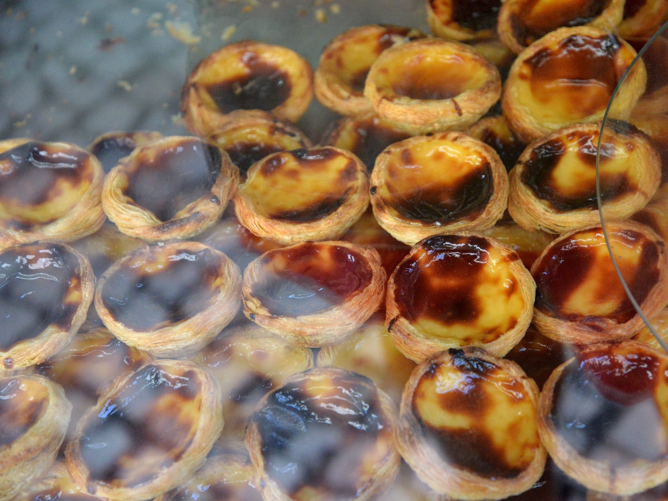 Португальцы — мастера маленьких вкусных пирожных. В Лиссабоне через каждые 50 метров встречаются витрины кондитерских с Pastéis de Nata. Первые пять были очень вкусные, как сказал очень давно сын нашего друга, когда его спросили о шоколадных трюфелях, оставленных на его попечении. Пирожное Ната — изобретение лиссабонского монаха, который жил в монастыре Жеронимуш в 18 веке. Монахи белком крахмалили себе салфетки и воротнички, а желтки шли на пирожное. Я видела, как их делают. Есть такое развлечение для туристов, за стеклянной загородкой девушки пальчиками размазывают слоеное тесто по металлическим формочкам. Парень, ответственный за тесто, еще улыбнулся мне, а взгляд девушек поймать было невозможно. Кто хочет настоящее пирожное Ната, тот должен ехать в Португалию. Я нашла рецепт попроще. Кстати, в нем нет муки.