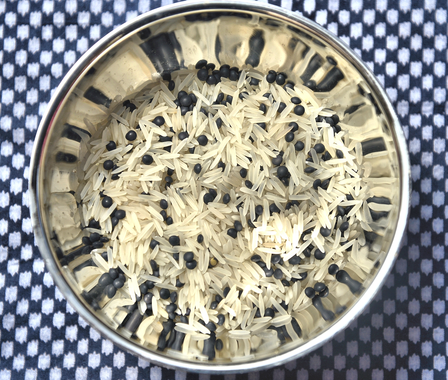 Маджадру из черной чечевицы я решила варить иначе, чем из зеленой. Черную чечевицу варим до готовности в небольшом количестве подсоленной воды и откидываем на дуршлаг. Варим одновременно рассыпчатый рис. На сковороде жарим на оливковом масле мелко нарезанные лук и чеснок, добавляем восточные пряности: куркуму, мускат, все, что есть, но в меру. Жарим все вместе, в конце бросаем горсть петрушки. Затем перекладываем рис и чечевицу на сковороду и минуту-две держим на слабом огне, перемешивая.