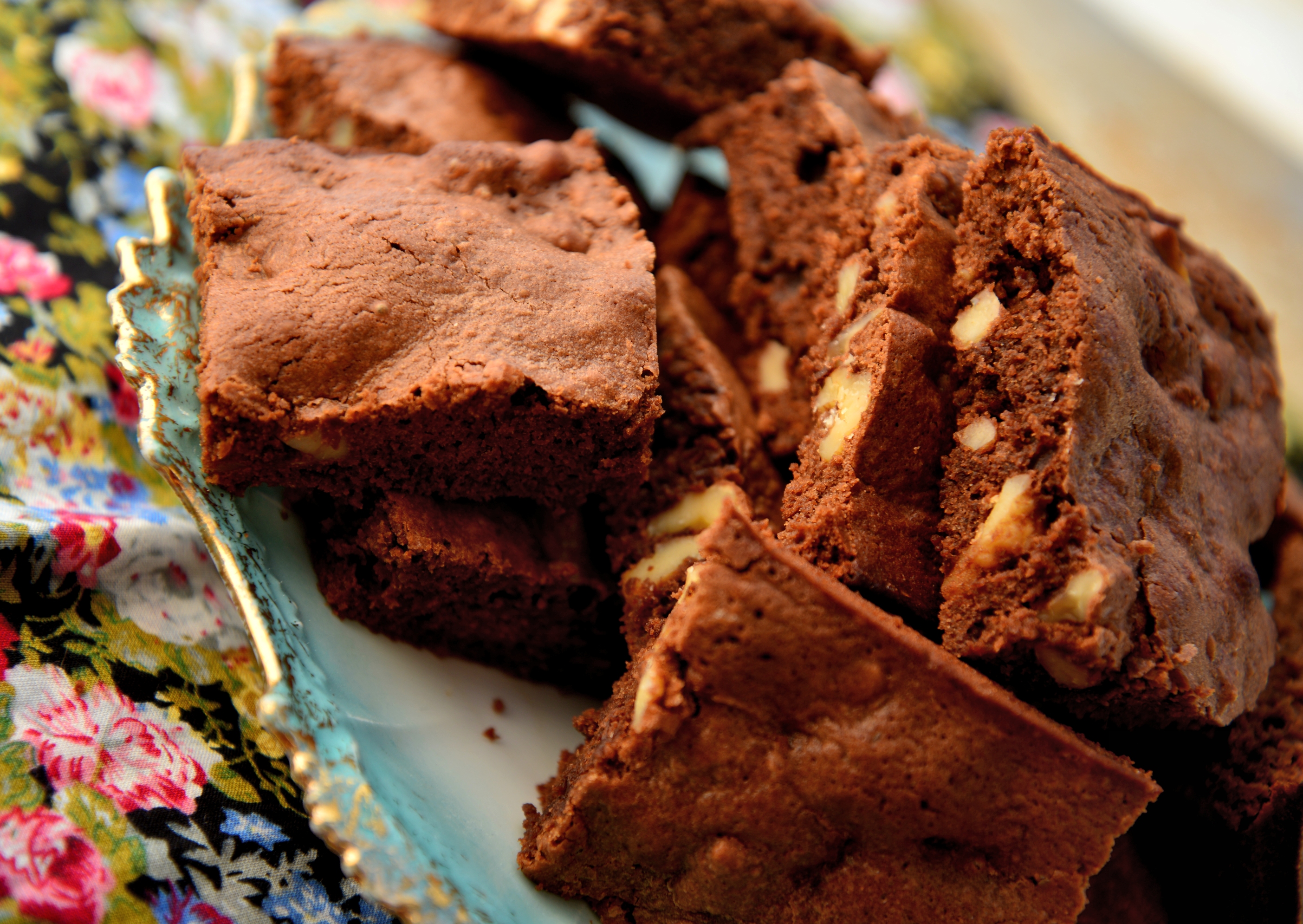 Разогреваем духовку и подготавливаем, то есть слегка смазываем небольшую плоскую форму. Яйца тщательно перемешиваем с сахаром, добавляем соль и ваниль. В водяной бане растапливаем шоколад и сливочное масло. Соединяем яичную с шоколадной массой, перемешиваем и насыпаем муку. Перемешиваем и наливаем тесто в форму. Ставим в духовку на 10-15 минут. Вынимаем, когда образуется корочка. Даем немного остыть и нарезаем квадратиками.
