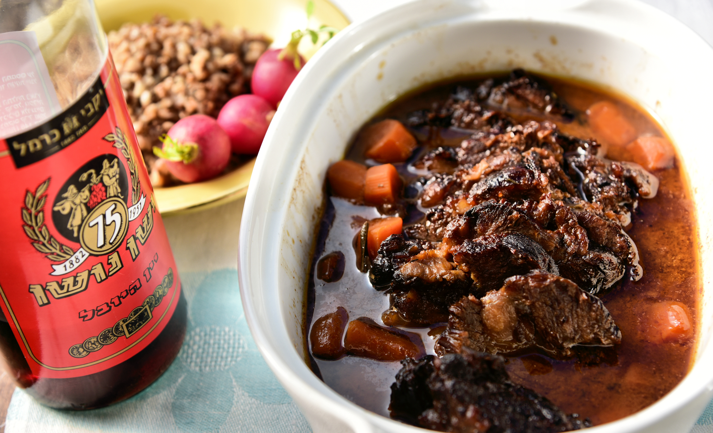 В американских фильмах и сериалах, действие которых происходит в Нью Йорке, герои, особенно, если они евреи, часто заглядывают в местный Дели (Deli). Дели от слова Delicatessen. И просят сэндвичи с brisket. А по-русски с грудинкой. Короткое иссследование в облаках Интернета, поход в местный мясной магазин и заход в арабскую лавку по дороге домой, там как раз было нужное супер кошерное вино — рецепт готов! Это очень просто, хотя долго.