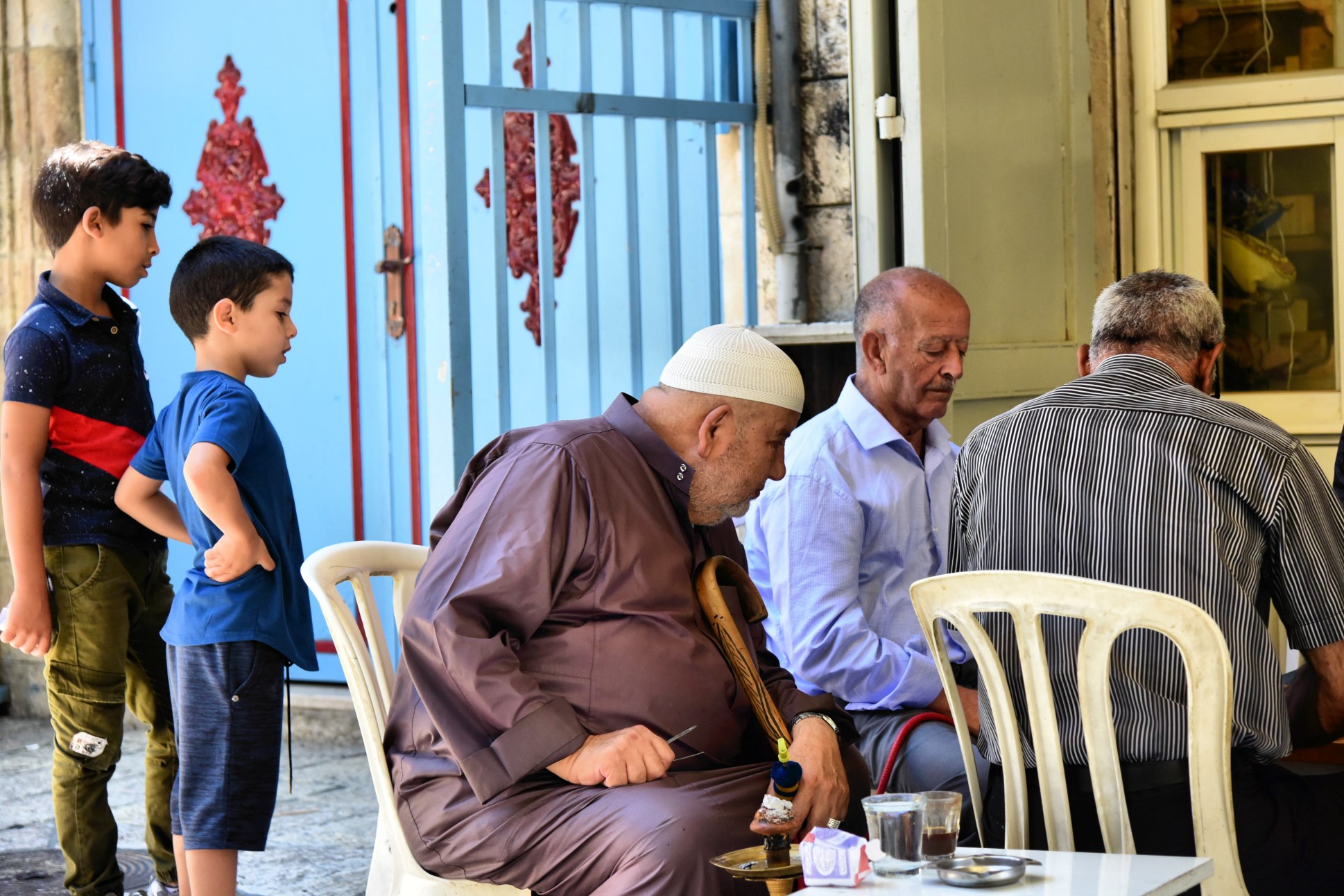Выйдя из музея Рокфеллера, мы пошли искать кондитерскую Залатимо, нашли, но именно эту кондитерскую они закрыли несколько месяцев назад. Пошли дальше в поисках кофе, но везде открыли Кофикс, а старые кафе закрыли, это я говорю о районе вокруг музея. Пришлось идти в старый город через ворота Ирода. Почти сразу за воротами мы нашли отличное кафе с превосходным кофе и малаби с дависом или девисом (דביס или דביש) — уваренным виноградным соком. Хозяин кафе послал нас в пекарню, которая находится от него на расстоянии трех арок. Там пекут лепешки, те что называются сфиха (صفيحة sfīḥah) с мясом, тхиной и томатным соусом. Тесто у них необыкновенного качества. Может в Стамбуле есть такое, но у нас это большая редкость. Потом на обратном пути мы в первом кафе выпили по стакану лимонада, который делают только из лимонов и поговорили с мусульманским туристом из Лондона. Is it not crazy?