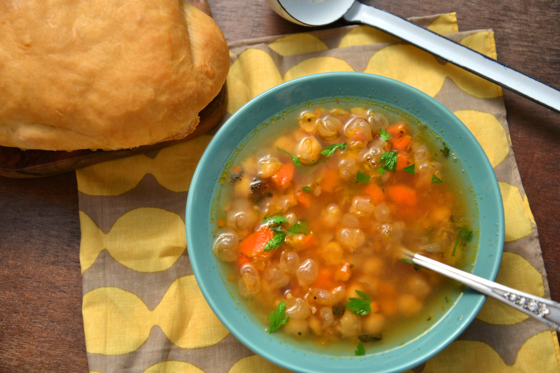 Хумус лучше замачивать на ночь. Если варить суп из сухого, придется варить его часов 5-6.