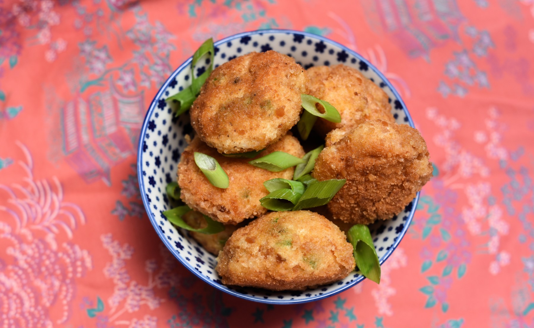 Из 12 креветок среднего размера получилось 8 небольших тефтелек. Есть в них намек на китайскую кухню. Креветки, лучше, если они чищенные, размораживаем, обсушиваем, убираем хвостики, добавляем кукурузный крахмал, я положила столовую ложку без верха, белок яйца, солим, перчим, добавляем несколько капель кунжутного масла, немного свежего имбиря, и затем перемалываем все блендером и кладем туда нарезанный зеленый лук. Все ставим на полчаса в холодильник. Я испугалась, что масса получилась не достаточно плотная и еще положила чайную ложку муки. В сковороду наливаем растительное масло с нейтральным вкусом, пока масло нагревается, мокрыми руками формируем шарики, обмакиваем их в сухарях, затем в размешанном желтке и снова с сухарях. Обжариваем на небольшом огне со всех сторон до готовности.